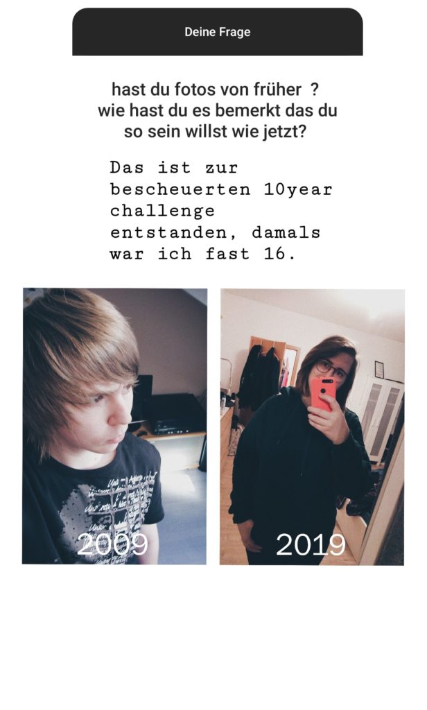 Ein kurzer Rückblick auf Sonntag (27.01.2019), an diesem Tag habe ich die Instagram Story von einzig-art-ICH übernommen. Die gesamte Woche beschäftigte sich mit anderen Leuten welche selbst Transgender sind, in diesem Zuge fand natürlich auch die Übernahme statt. Bereits am Montag postete Vanessa meine „Story“.